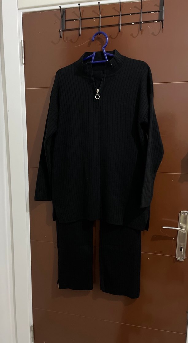 Siyah renkli, yüksek yakalı ve uzun kollu örgü kadın kazak, bol kesimiyle rahat ve normcore tarzı sunar.