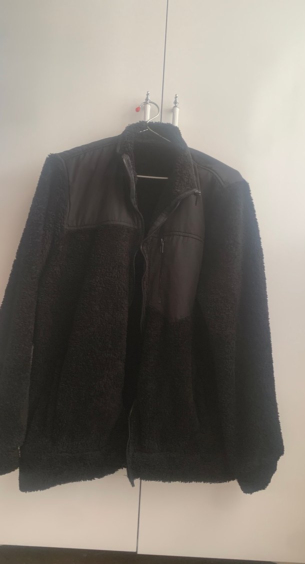 Bu siyah erkek peluş ceket, yüksek yakalı ve kürk detaylıdır. Salaş kesimi ve uzun kollu yapısıyla rahat bir sokak stili sunar. Normal midi boyda ve desensizdir, günlük kullanım için uygundur.