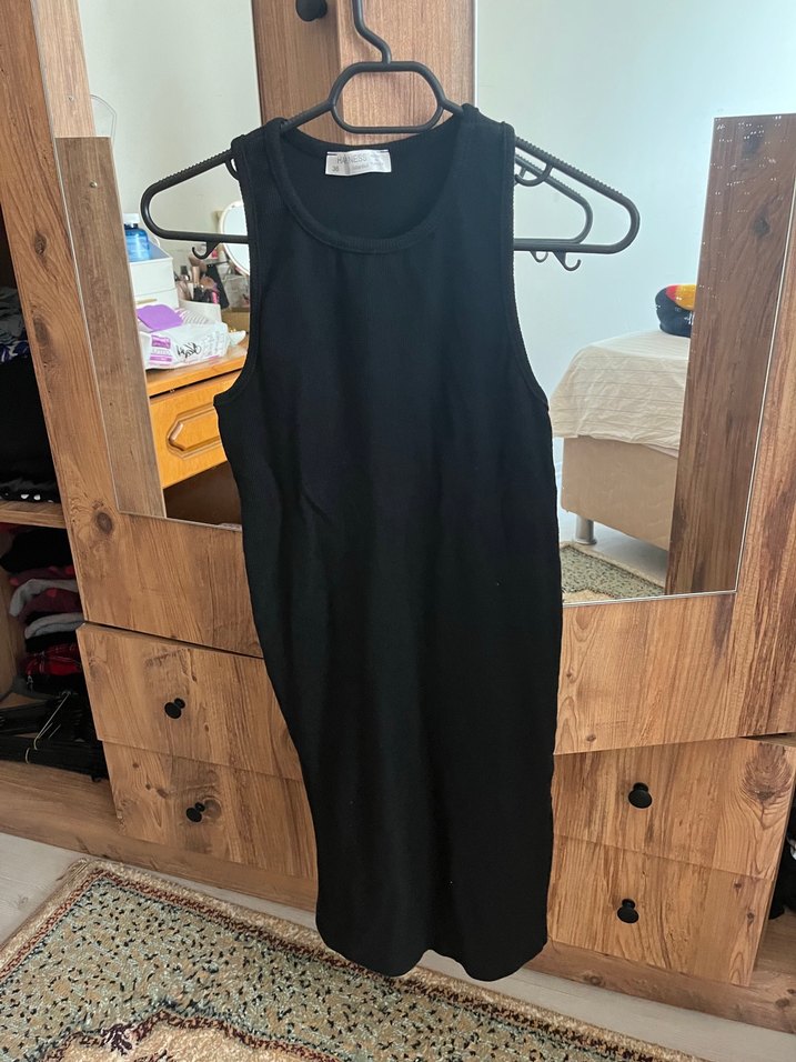 Siyah, kolsuz, yüksek yakalı, midi boy, vücuda oturan , yumuşak sentetik kumaştan günlük kullanım için uygundur.