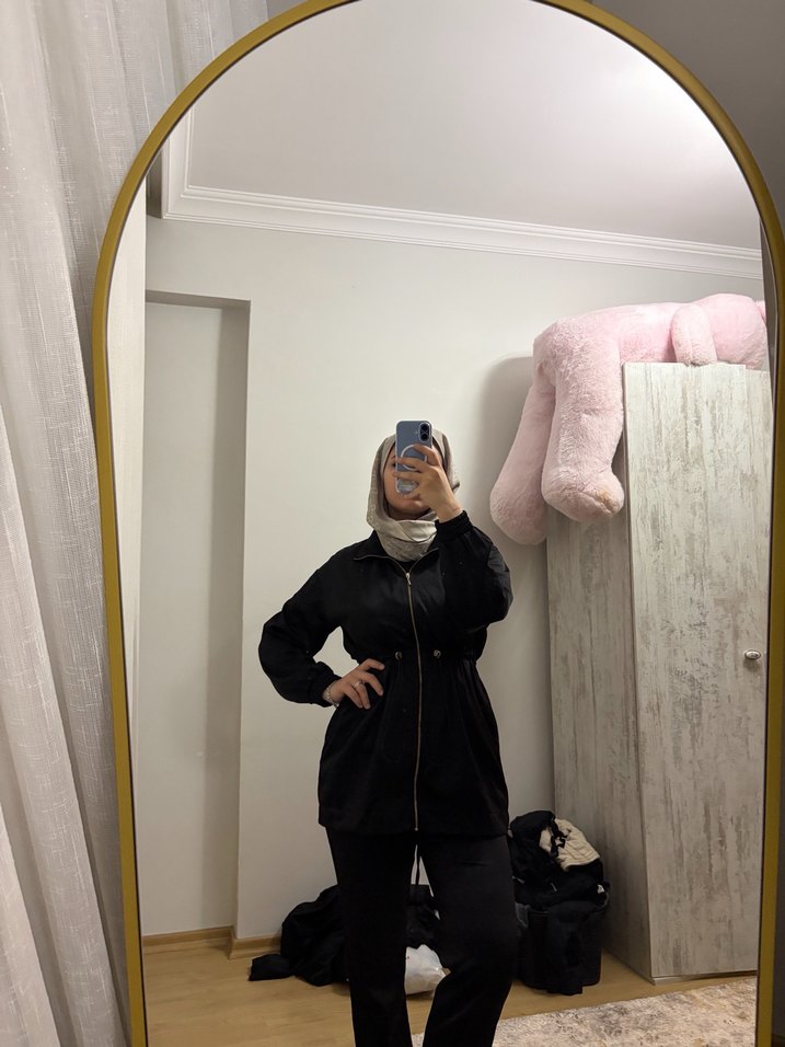 Siyah midi boy, yüksek yakalı ve uzun kollu kadın kabanı, rahat kesimiyle şık ve gündelik kullanım için uygundur. Yumuşak ve sıcak kumaştan üretilmiştir.