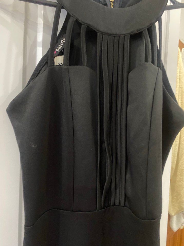Siyah renkte, yüksek yakalı ve ince askılı uzun abiye elbise. Vücuda oturan kesimi ve fermuarlı detayıyla gotik stile uygun, ofis kullanımı için ideal.
