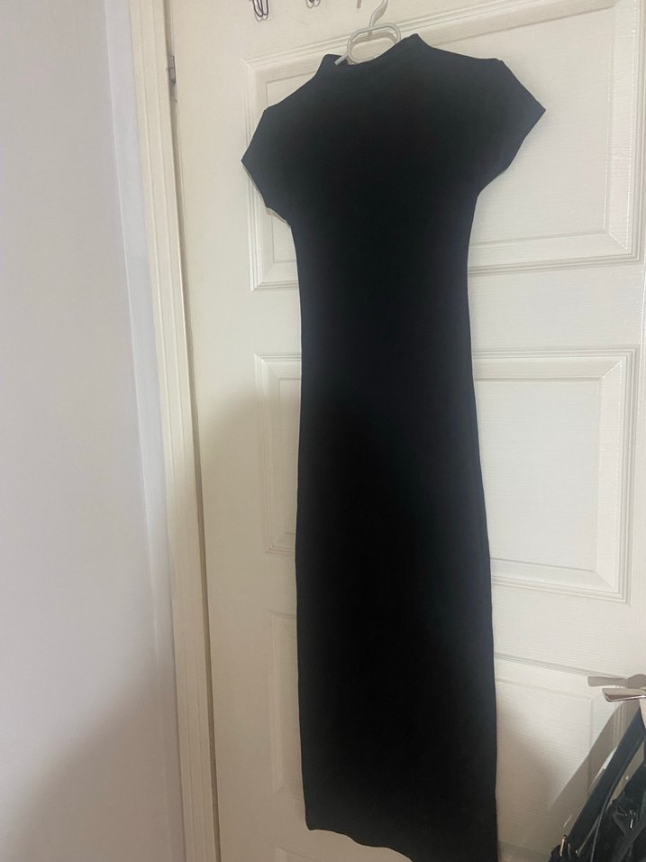 Siyah Yüksek Yakalı Uzun Kadın Elbise