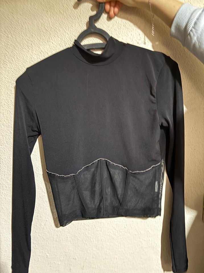 Siyah Yüksek Yakalı Uzun Kollu Bluz