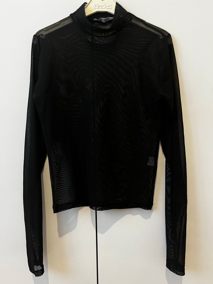 Siyah, yüksek yakalı ve uzun kollu bu dar kesim bluz, düz ve sentetik kumaştan üretilmiştir. Ofis kullanımı için uygun goth tarzında şık bir parça.