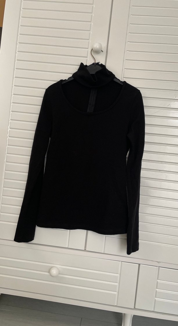 Yüksek yakalı ve uzun kollu, siyah renkli, yumuşak ve sıcak kumaştan yapılmış, gotik tarzda günlük kullanıma uygun dar kesim kadın kazak.