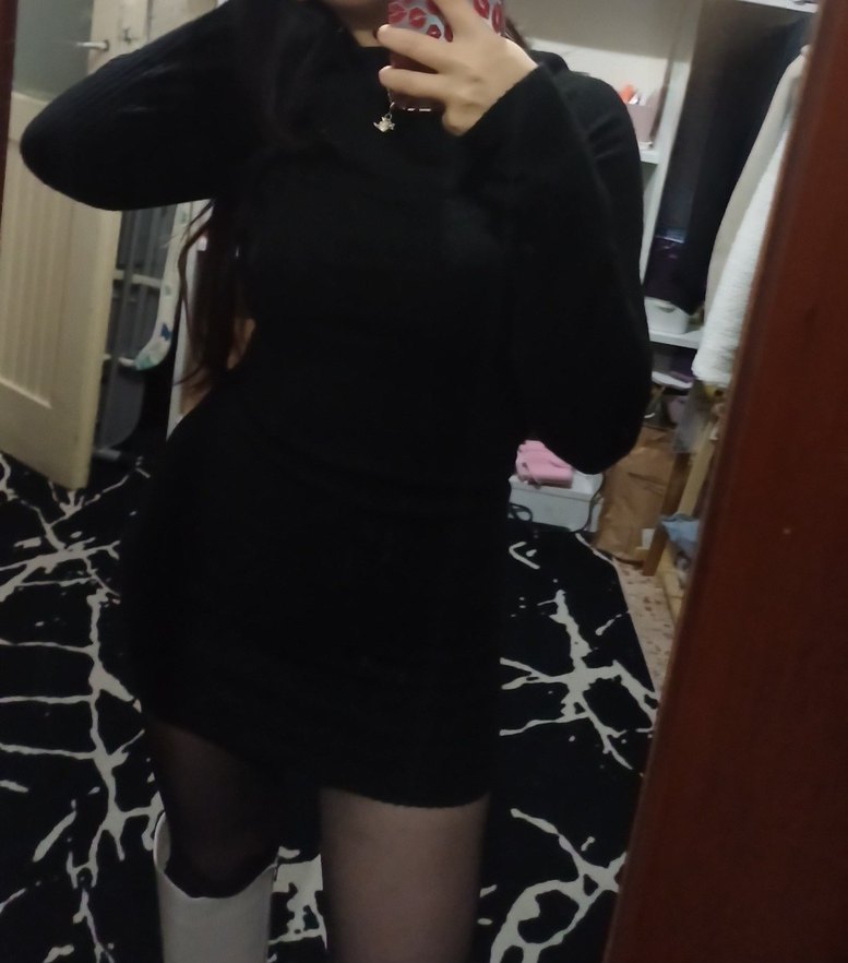 Siyah Yüksek Yakalı Uzun Kollu Mini Elbise