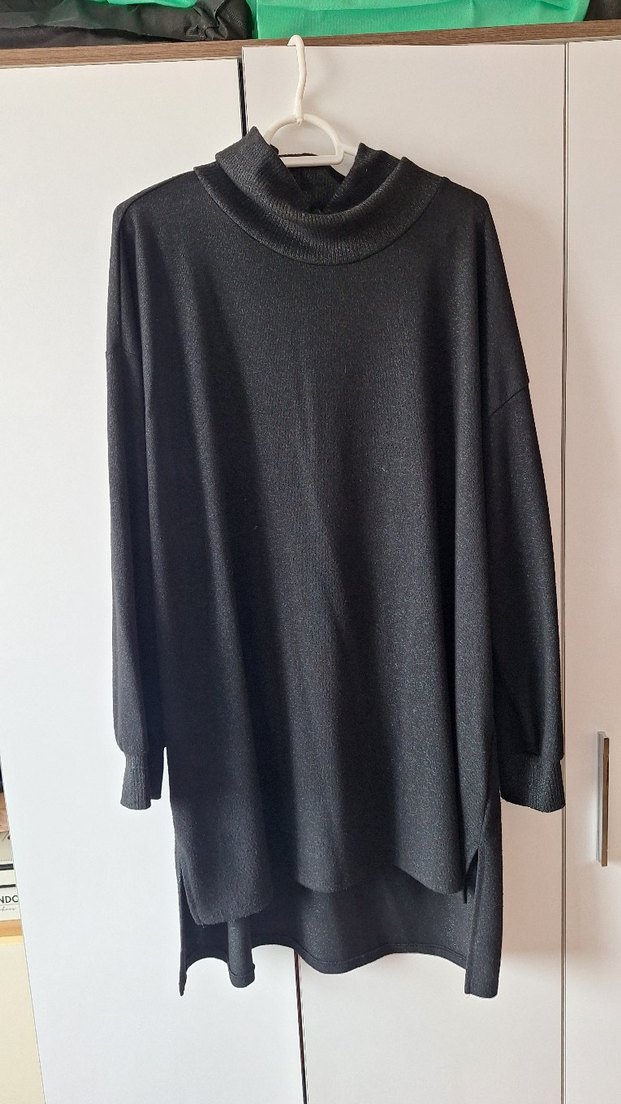 Siyah renkli, yüksek yakalı ve uzun kollu salaş kesim kazak. Orta boy uzunluğu ve rahat yapısıyla günlük kullanıma uygun, konforlu bir parça. büyük geldiği için satıyorum