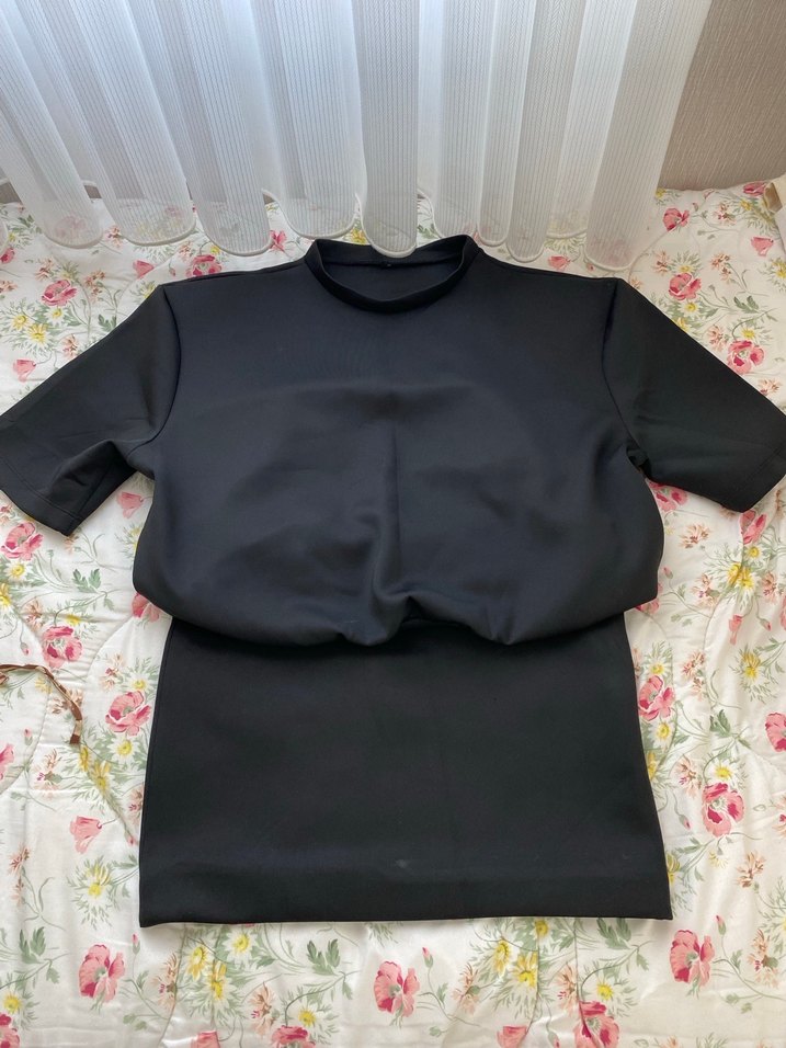 Yüksek yakalı, kısa kollu ve drapeli tasarımlı, siyah renkte vatkalı elbise m l uyumlu olduğunu düşünüyorum