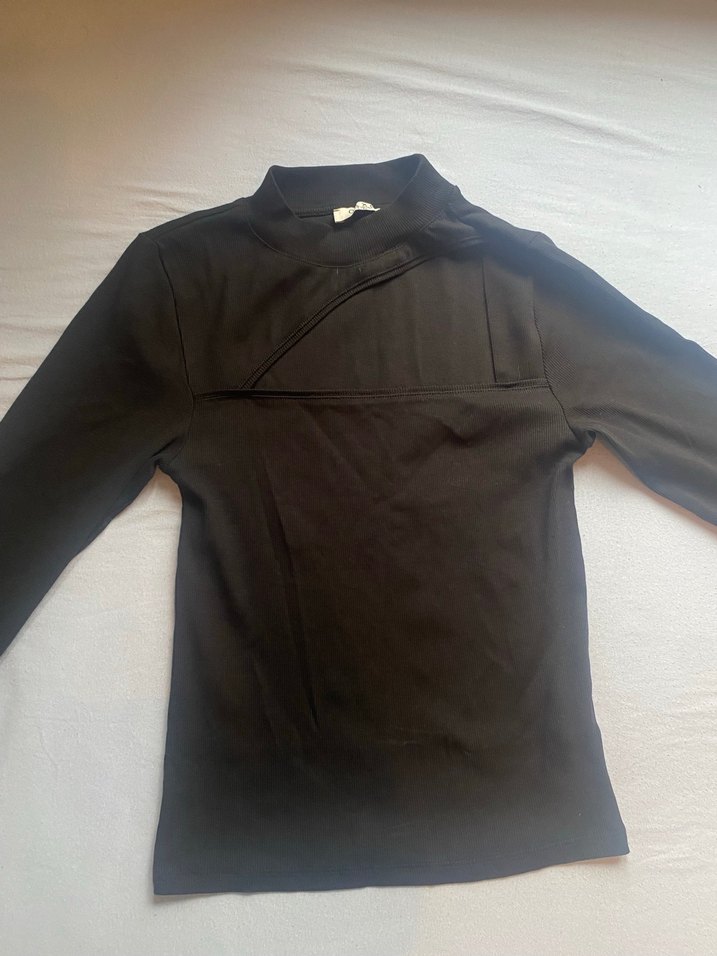 Yumuşak ve sıcak kumaştan, yüksek yakalı ve uzun kollu, vücuda oturan. Minimalist gotik tarzda, desensiz ve günlük kullanıma uygun.