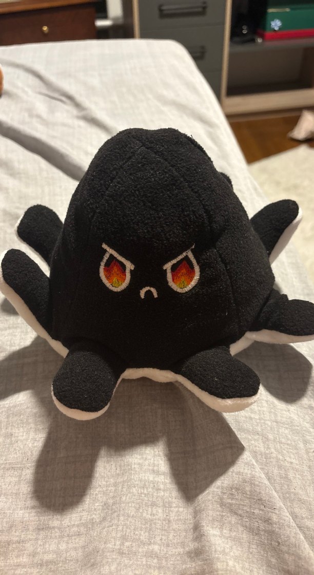 Nakışlı ateş gözlü ve ifadeli yüzlü siyah yumuşak ahtapot peluş oyuncak.