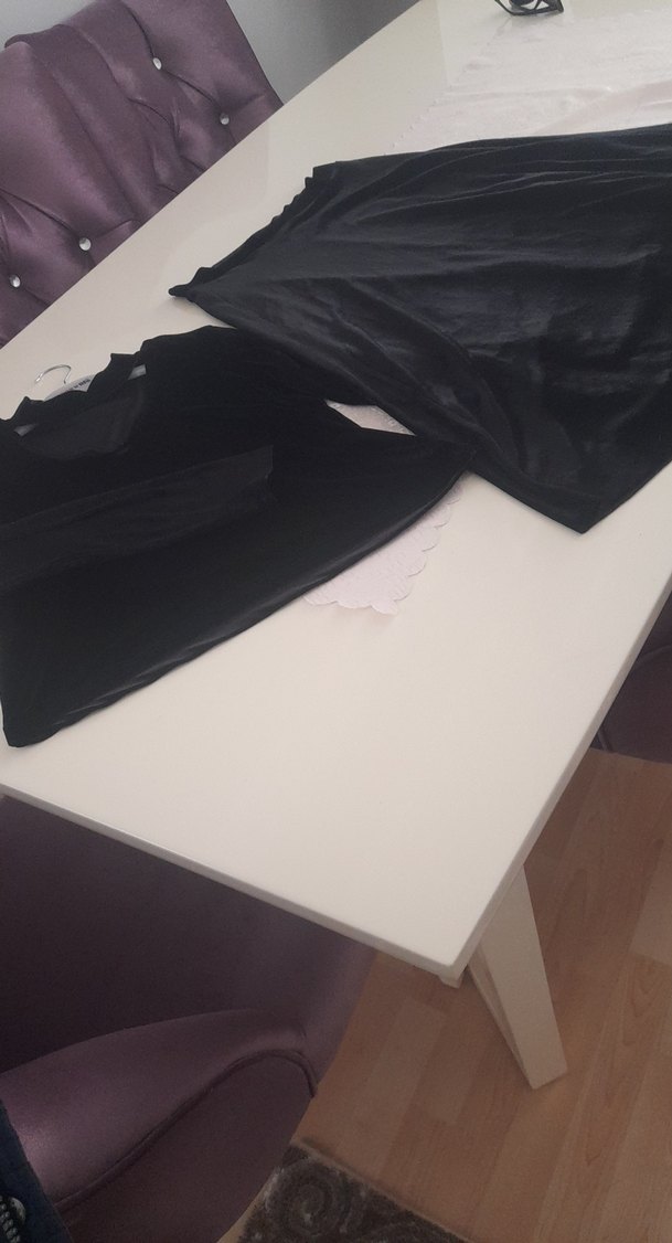 Yumuşak kadife kumaştan yapılmış siyah elbise . Desensiz sade tasarımıyla farklı tasarıma uygundur. ️