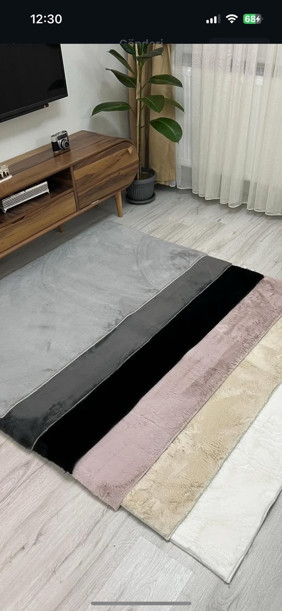120*220 oval siyah peluş halı 0 dan farksız yeni evli evinde 1 ay serili kaldı streçledim kaldırdım o yüzden detaylı fotoğrafını ekleyemedim gerçekten alacak olana açar atarım