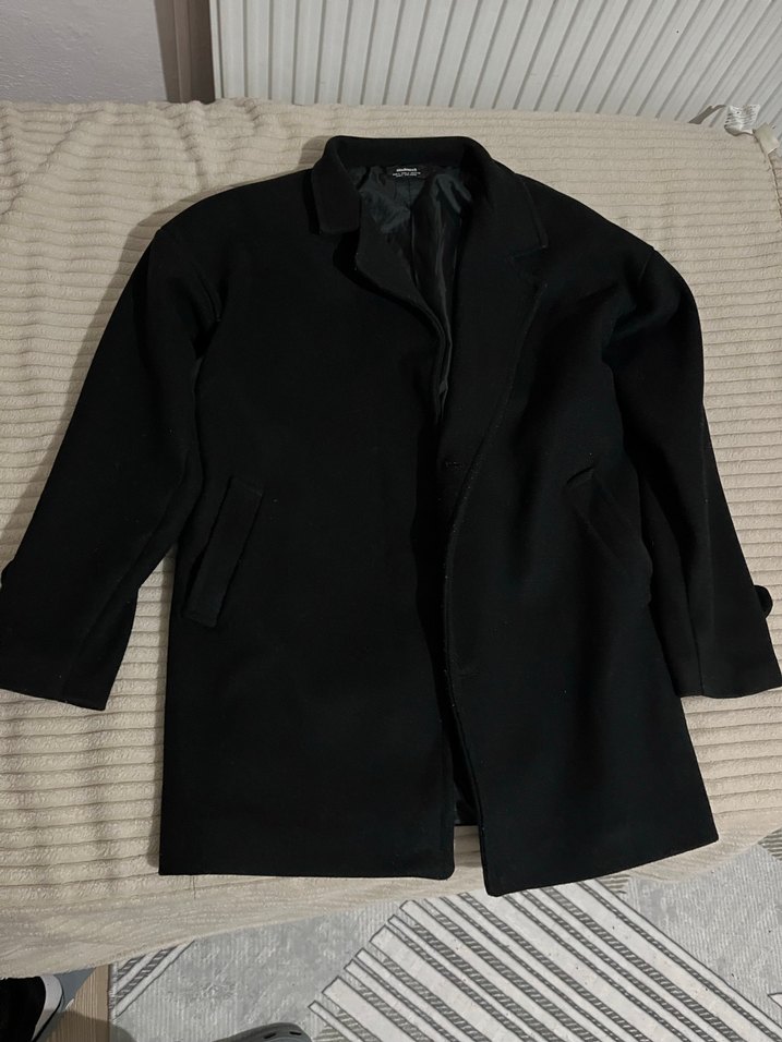 Defosu veya yırtık yoktur 2-3 kere kullanıldı Klasik yakalı, iki yan cepli siyah yün kaban. Düz kesimi ve astarıyla şık bir görünüm sunar.