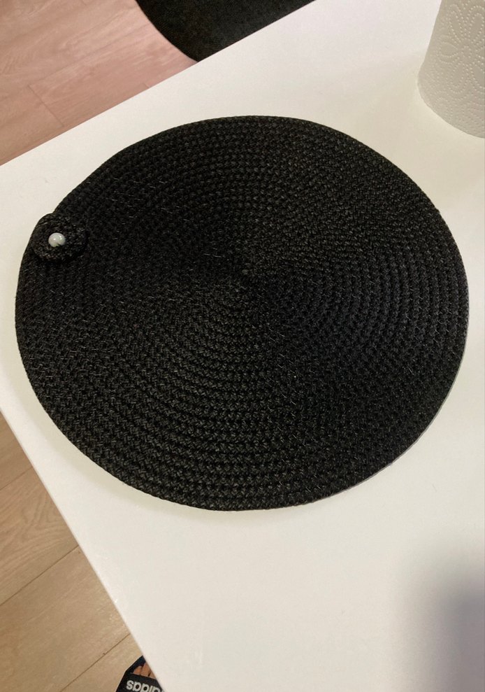 Dairesel siyah dokulu yüzeyi ve küçük bağlı halkası ile pürüzsüz Amerikan servisi