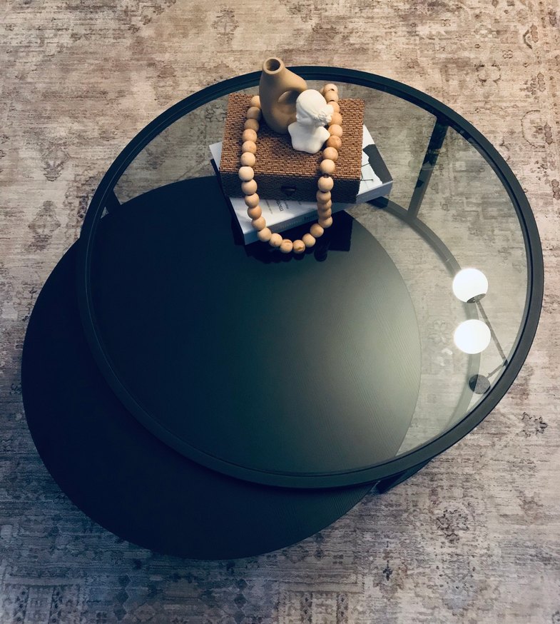 Cam yüzeyli, siyah yuvarlak sehpa. Üsküdar teslim. Zigon sehpaları da vardır. Takım olarak da satabilirim.