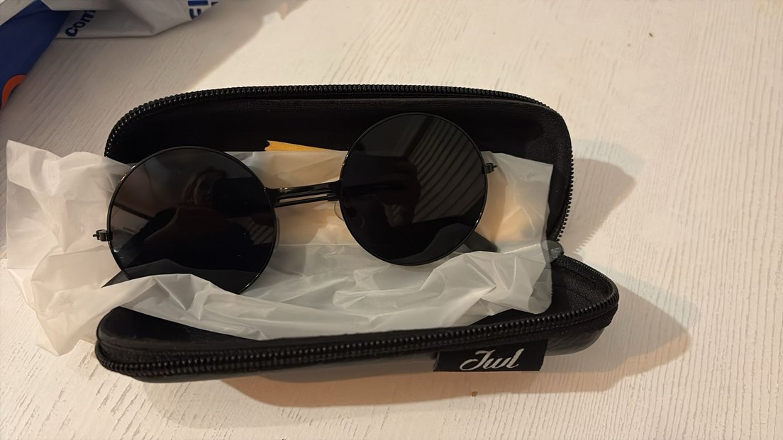 Minimalist tarzda, fermuarlı kılıfı olan siyah yuvarlak gotik gözlük. Rock punk havasına uygun. ️