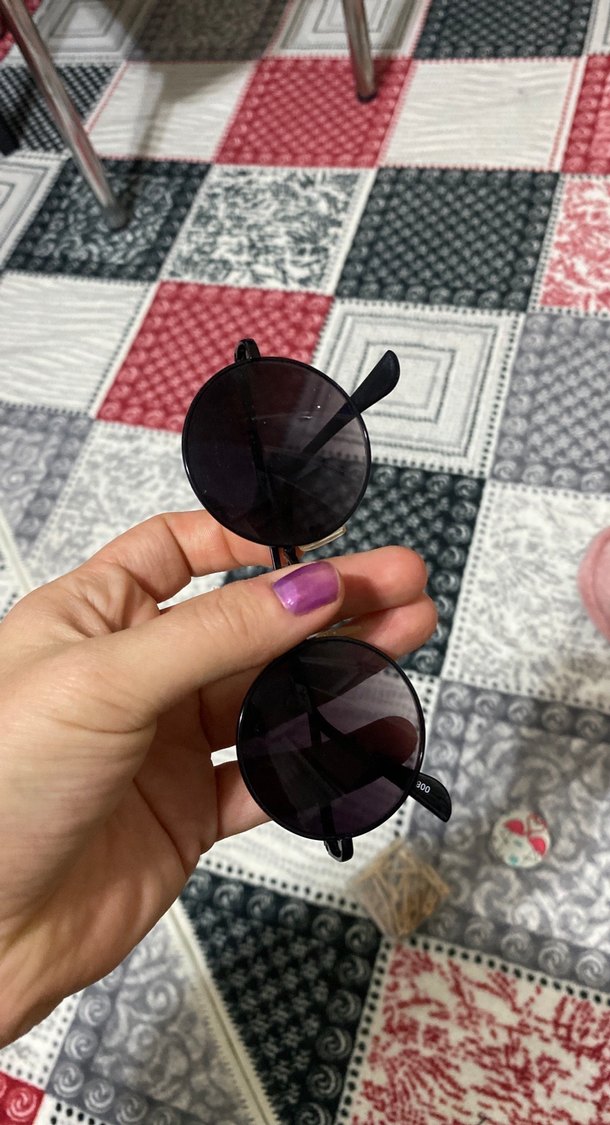 Siyah örgü detaylı yuvarlak güneş gözlüğü, koyu renk camlarıyla bohem ve retro tarzını yansıtır. ️