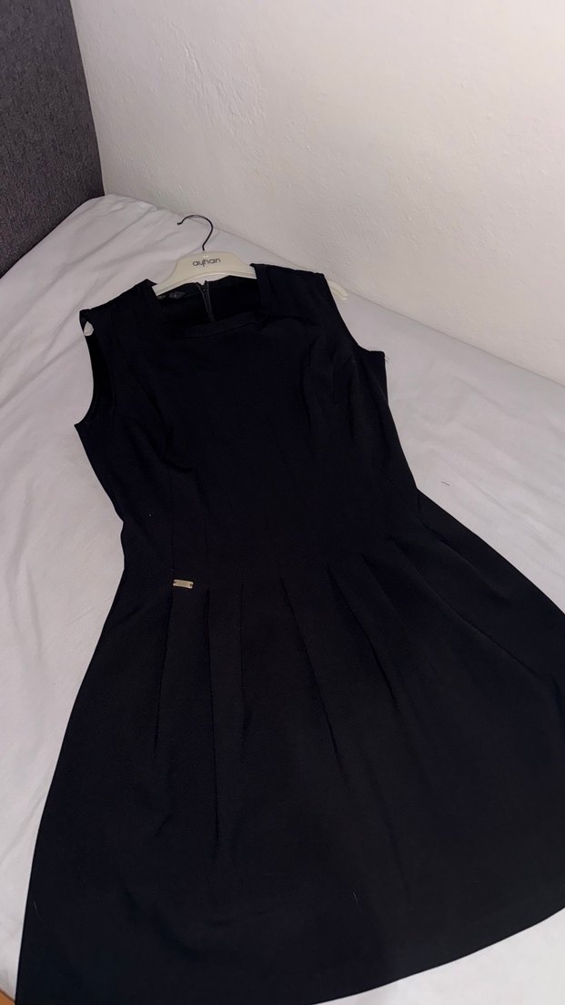 Siyah renkte,yuvarlak yakalı ve kolsuz uzun abiye elbise. Drapeli detaylarıyla klasik ve sade tasarıma sahip, ofis ve özel günler için uygundur. Ayhan marka