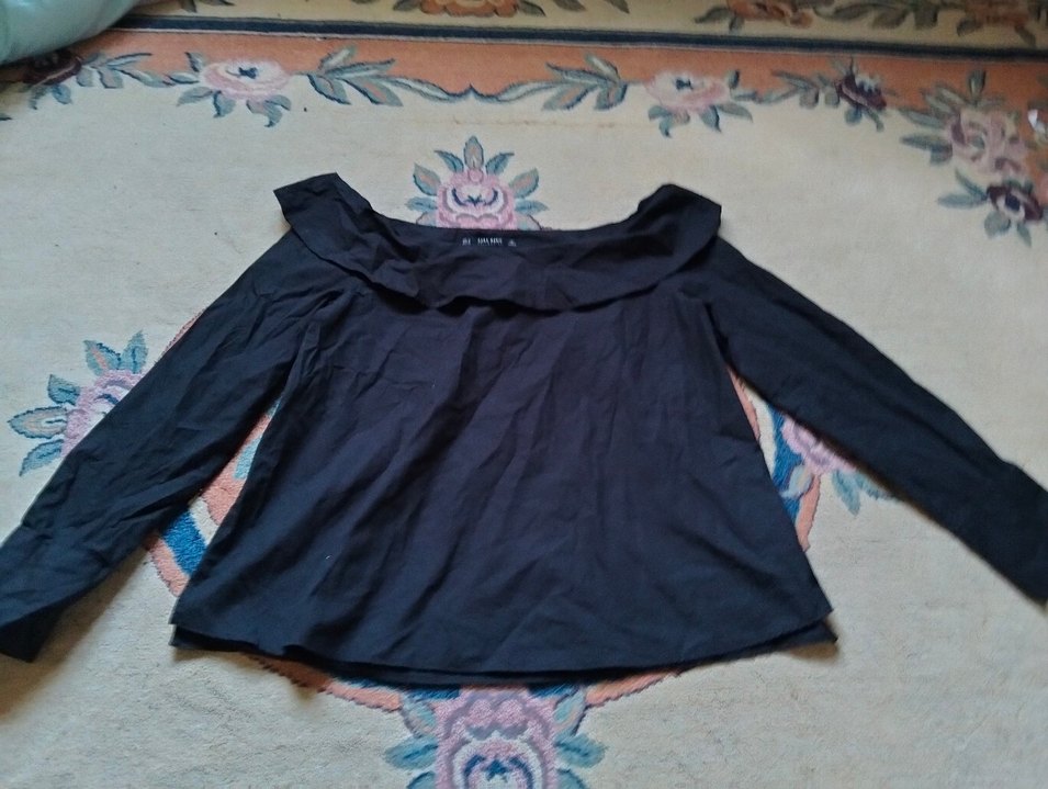 Siyah Zara Keten Bluz, Uzun Kollu, Salaş