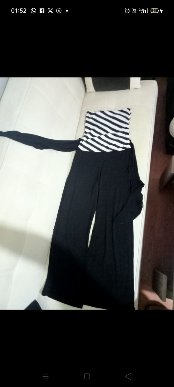 Askılı, straplez zebra desenli üst kısmı ve kuşaklı beli ile uzun siyah pantolonlu, Pamuklu kumaştan yapılmış dar kesim Kadın tulumu.