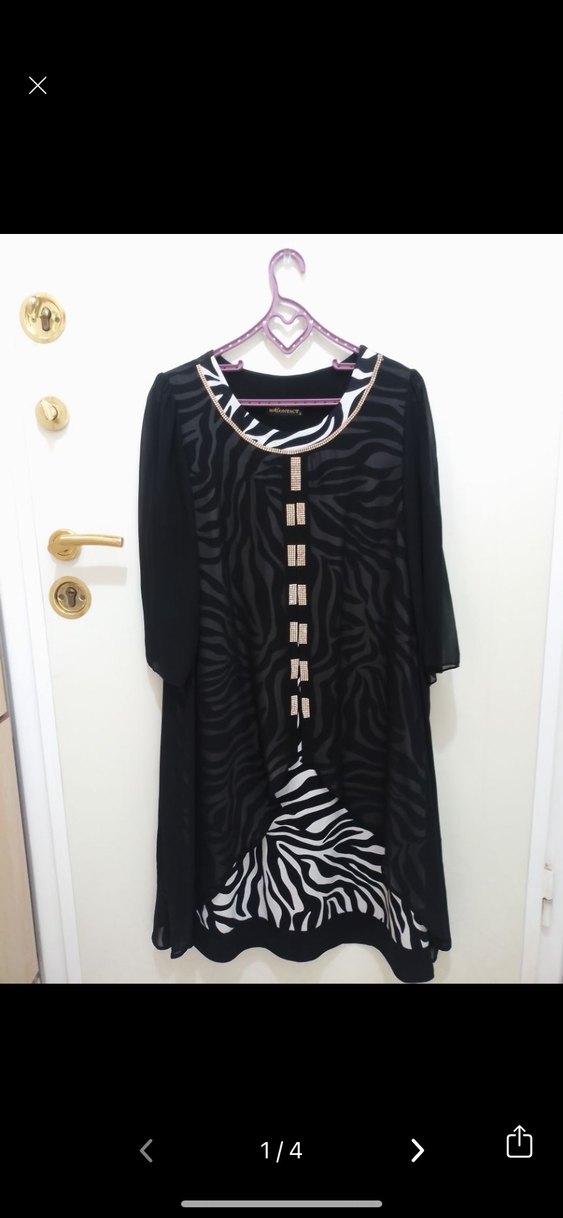 Rengi Canlı resimde göründüğü gibidir leopar model üstü siyah tül kolları da aynı şekilde.. Boy 105 cm en 57 cm likralı esneme payı var.. Beden 5 yazıyor etikette iade yok