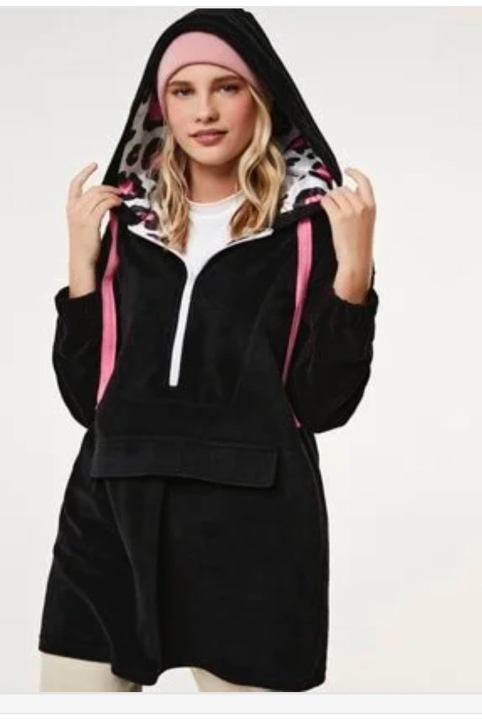 Siyah Zebra Desenli Kapüşonlu Oversize Kadın Sweatshirt