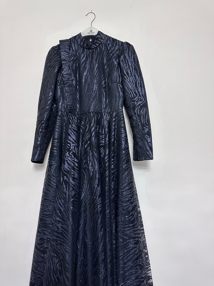 Siyah Zebra Desenli kemerli Uzun Kadın abiye
