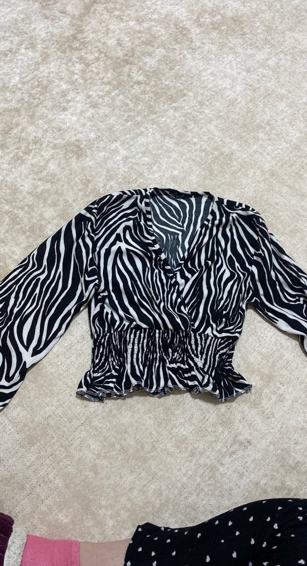Siyah Zebra Desenli Kısa Kadın Bluz