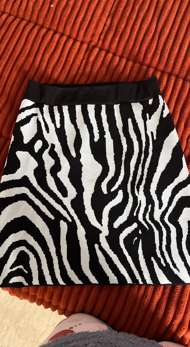 Siyah Zebra Desenli Mini Kadın Etek
