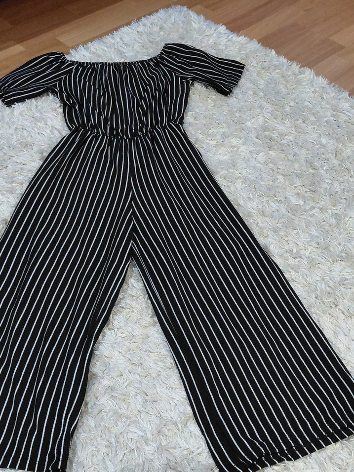 Kadınlar için uzun, bol kesim ve pileli detaylara sahip tulum.siyah zebra desenli yumuşak sentetik kumaştan yapılmıştır.