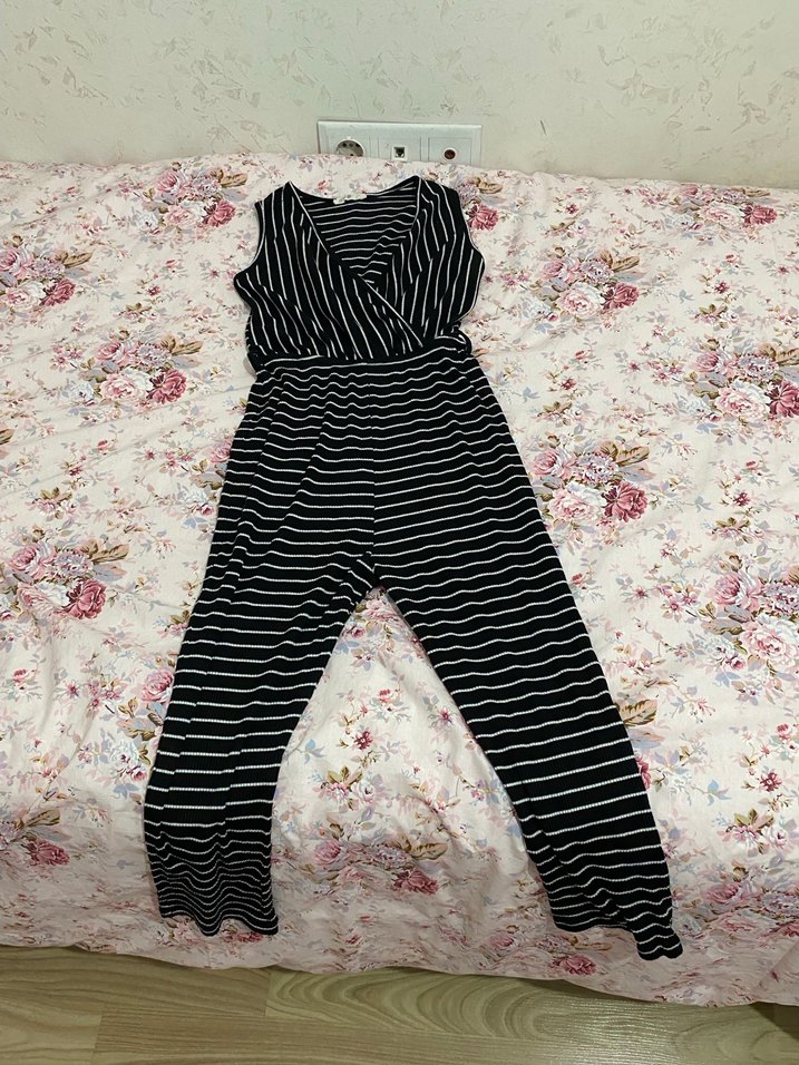 Siyah zebra desenli, v yaka, uzun ve dar kesim tulum. Yumuşak sentetik kumaştan, dantel detaylı, günlük rahat sokak stili için uygun.