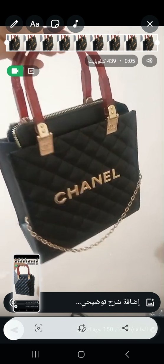 Siyah deri kadın çanta, zincir detaylı ve baskılı Chanel logosu ile günlük sokak stili için uygundur.
