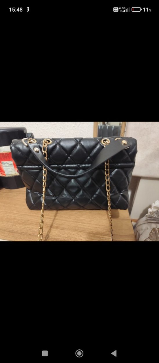 Siyah deri, kapitone desenli kadın çanta, altın renk zincir detaylarıyla klasik zarafeti ve Paris sokak stilini yansıtıyor.