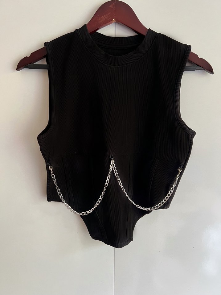 Siyah Zincir Detaylı Gotik Body Zinciri