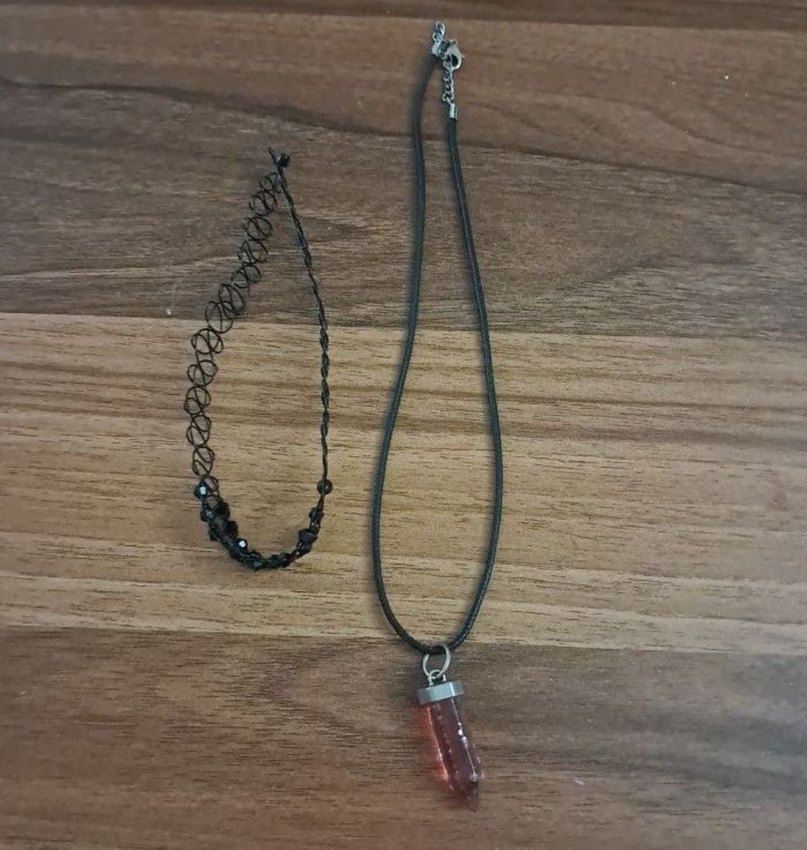 Siyah renkte, zincir detaylı ve bağlama desenli gotik midi uzunluğunda kolye. Günlük kullanıma uygun. iksini birden vereceğim