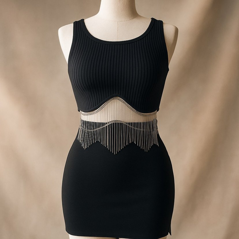 Siyah Zincir Detaylı Gotik Vücut Zinciri
