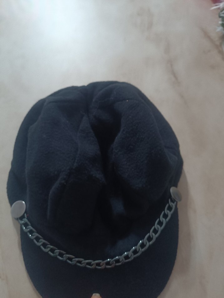 Siyah renkli, zincir detaylı ve keçe kumaştan kadın şapkasıdır. Gotik tarzda, rahat ve şık bir görünüme sahiptir.