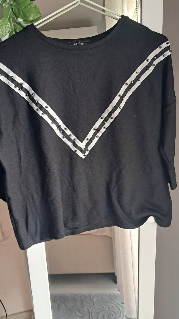 Siyah uzun kollu, V yaka ve zincir detaylı kadın kazak. Rahat kesim, sentetik kumaştan günlük rahat kullanım için uygun. Nakışlı desen şıklık katıyor.