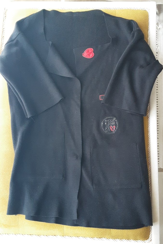 Düğmeli, kısa kollu, yakalı siyah ceket . Rahat kesimli, midi boyda, hafif ve sıcak kumaştan üretilmiştir. Günlük kullanıma uygundur. yarım kollu boyu 72 cm
