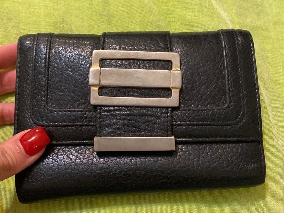 deri malzemeden yapılmış, tokalı kadın cüzdan Minimalist ve biker tarzını yansıtan şık bir model.