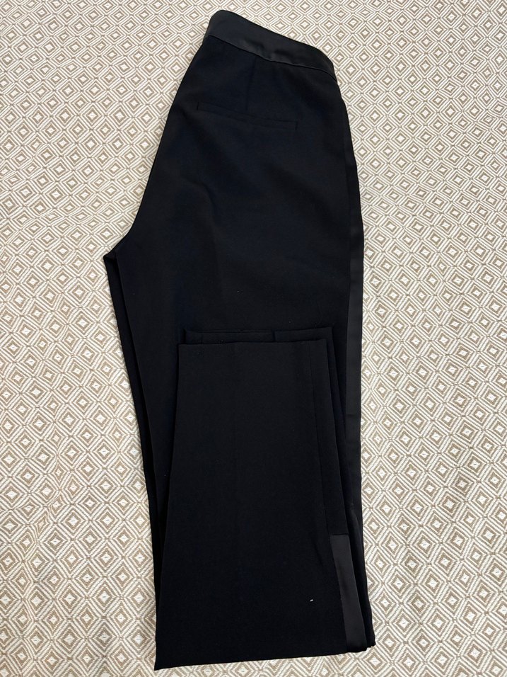 Siyah renkte, kemerli, midi boyda, klasik şıklıkta, ofise uygun kadın kumaş pantolon.yandan farmuarlı