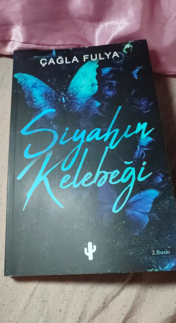 Çağla Fulya'nın 'Siyahın Kelebeği' adlı romanı, koyu zemin üzerinde parlak mavi kelebekler bulunan ikinci baskı kitap.