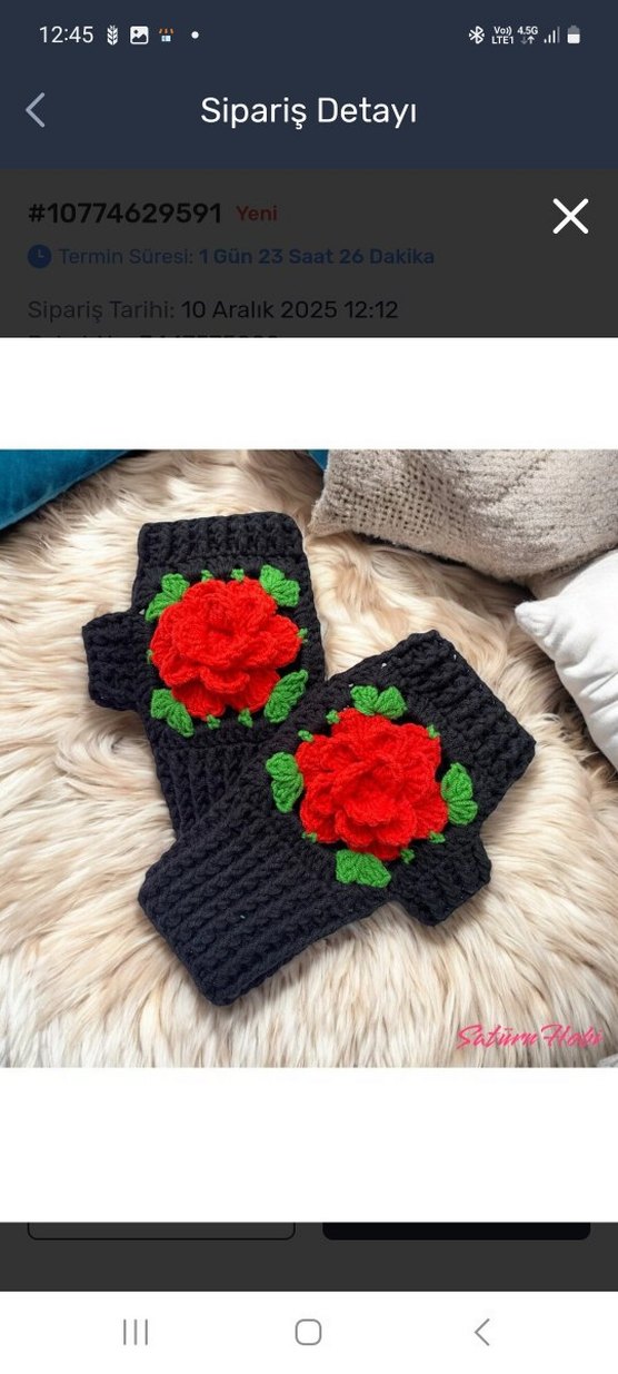 Siyah örgü eldivenler, renkli kırmızı çiçek detaylarıyla goth ve bohem tarzını yansıtıyor. Rahat ve sıcak dokusu ile dikkat çekiyor. ✋