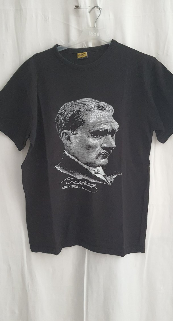 Siyahulu önder Atatürk Baskılı Kısa Kollu Erkek Tişört