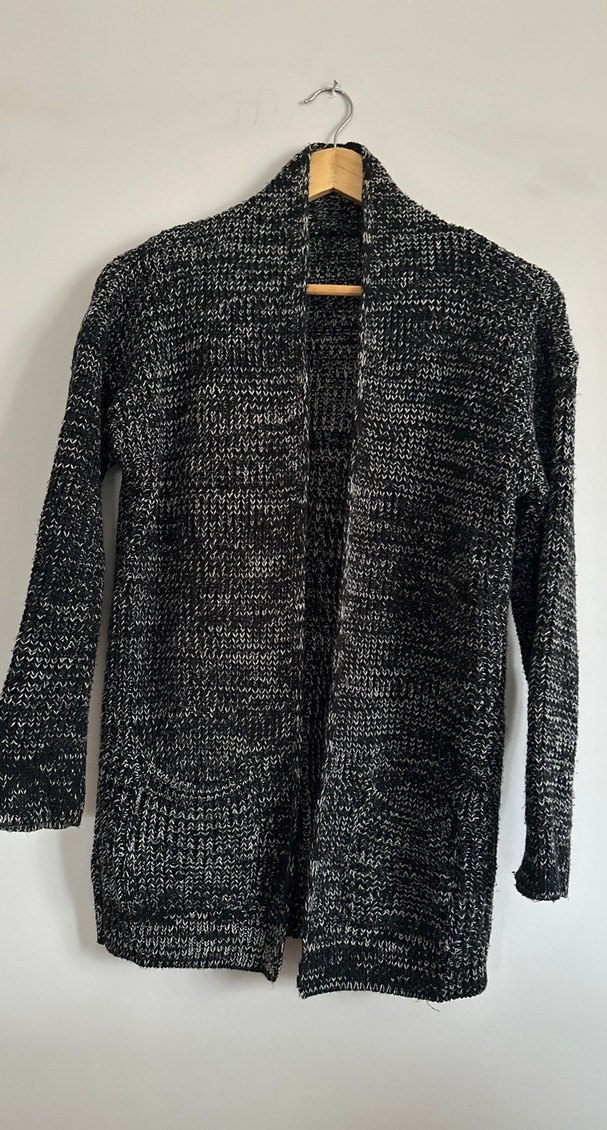 uzun kollu ve bol kesimdir. Notlu yaka detayına sahiptir. Günlük hırka
