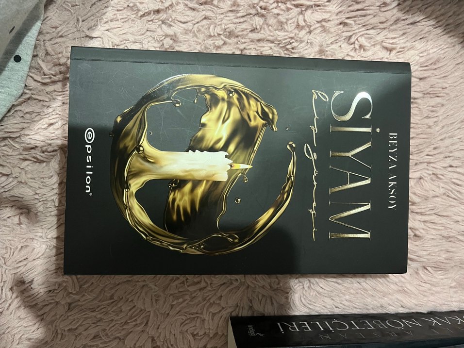 Altın detaylı, siyah kapaklı mitoloji kitabı. Üzerinde mum figürü bulunan sert kapaklı bir baskıdır.