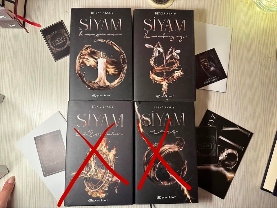 Beyza Aksoy'un Siyam Serisi 4 kitap. Ciltli, posterli, ayraçlı. Hiçbir kusuru yok. İlk kitabın yarısı dışında hiç okunmadılar İLK İKİ KİTAP KALTI