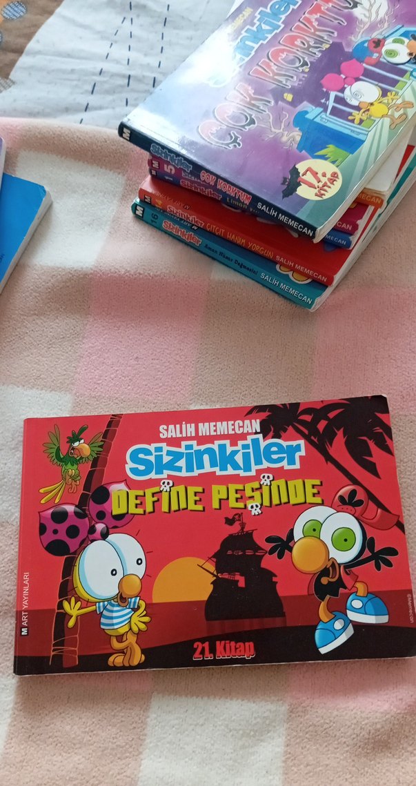 Salih Memecan'ın Sizinkiler serisinin 21. kitabı, renkli çizimler ve mizahi anlatımla define peşinde macerayı anlatıyor. Elimde fazlasıyla sizinkiler mevcut toplu alımda yardımcı olur um.