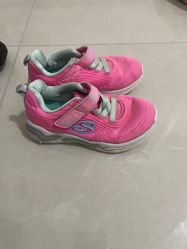 Pembe renkli, elastik bağcık detaylı ve kauçuk tabanlı kız çocuk spor ayakkabısı, renkli batik desenlidir. Görseldeki gibidir. Yıpranma payı vardır