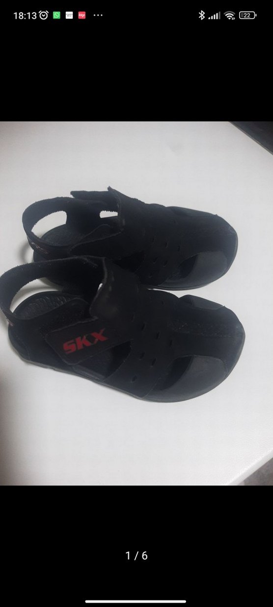 Tokalı, siyah kauçuk erkek çocuk sandaletleri. Sokak stili ve sade tasarıma sahip, Skechers